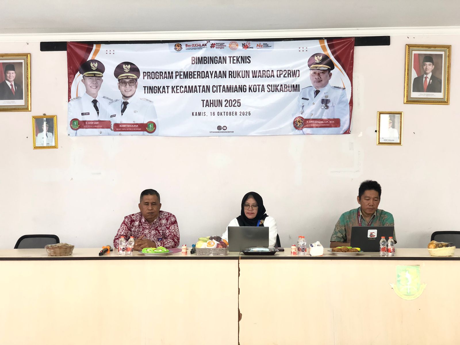 Dalam sambutannya, Camat Citamiang menyampaikan bahwa Program P2RW merupakan salah satu upaya nyata Pemerintah Kota Sukabumi dalam memperkuat partisipasi masyarakat dan mempercepat pemerataan pembangunan di lingkungan RW. Beliau juga menegaskan pentingnya sinergi antara pemerintah, lembaga kemasyarakatan, dan masyarakat dalam mewujudkan lingkungan yang berdaya, produktif, dan berkelanjutan.