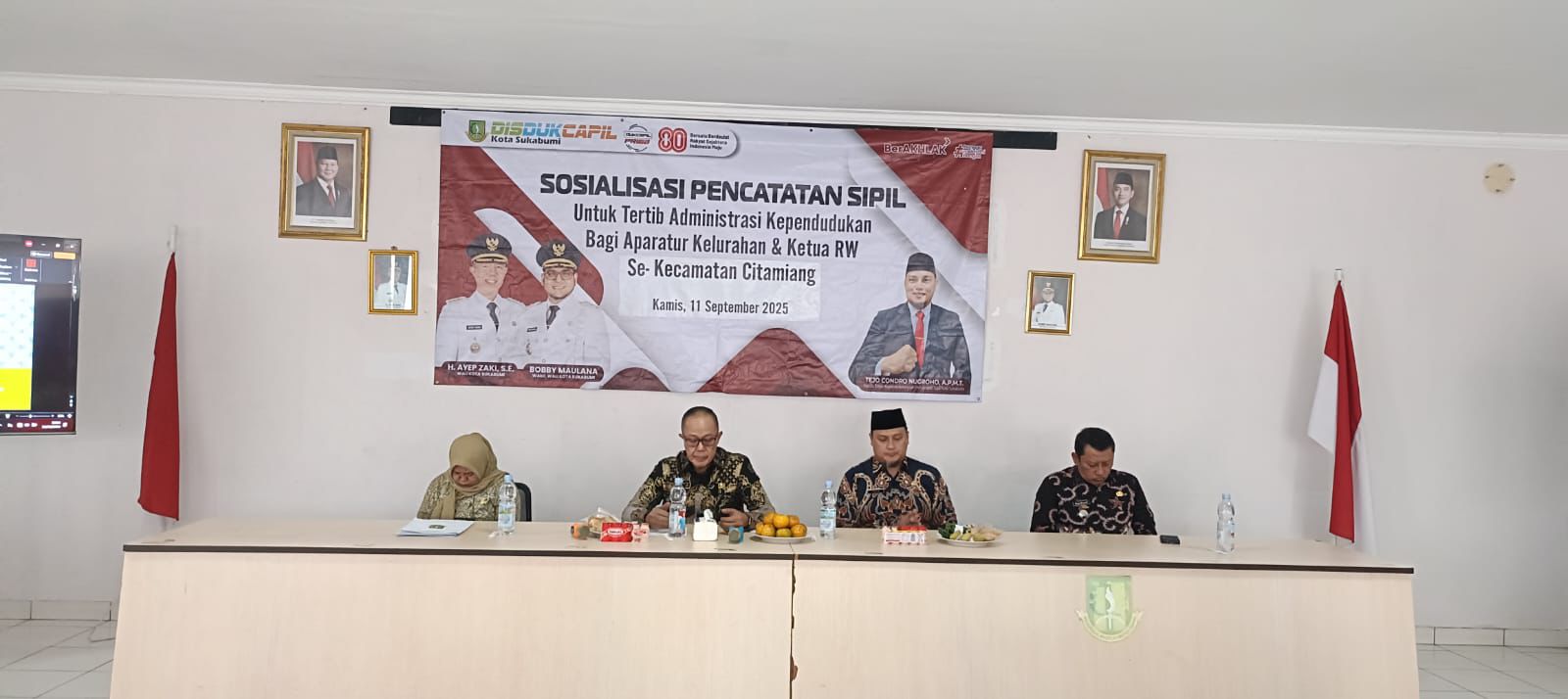 Acara sosialisasi dihadiri oleh Wali Kota Sukabumi, Kepala Dinas Kependudukan, Camat Citamiang, seluruh Lurah se-Kecamatan Citamiang, serta Ketua RW se-Kecamatan Citamiang. Kehadiran unsur pimpinan kota hingga tingkat kelurahan menunjukkan keseriusan pemerintah dalam memperkuat pelayanan administrasi kependudukan yang tertib, cepat, dan akurat.